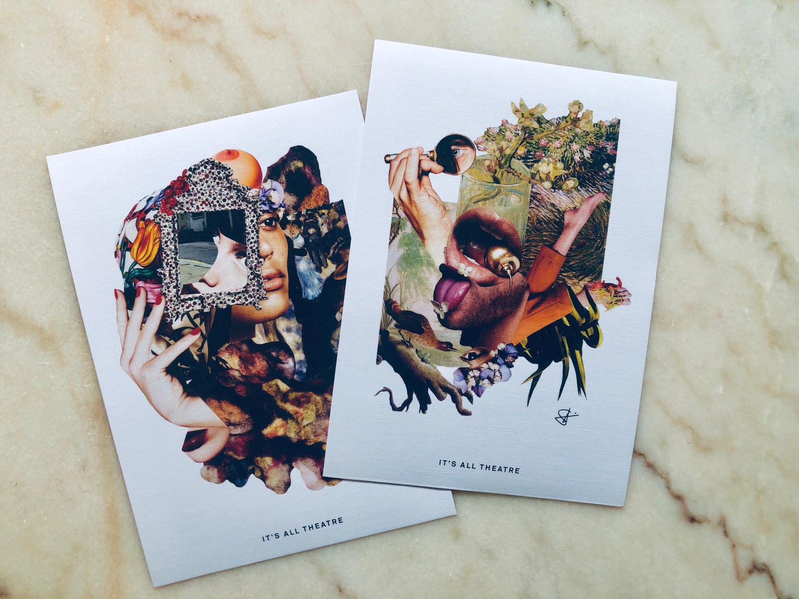 Het originele tweeluik ‘IT’S ALL THEATRE’ hangt in ons theaterhuis en kunt u tijdens een voorstelling in het echt komen bewonderen.