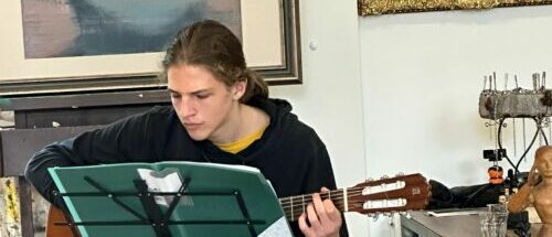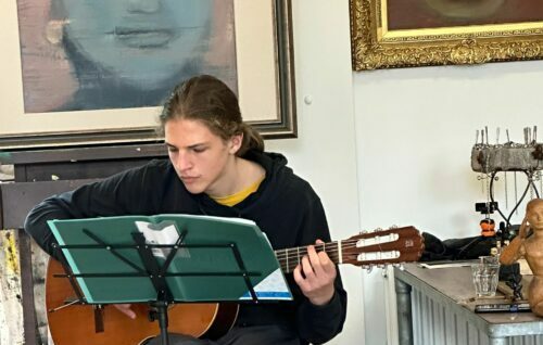 Uit Oekraine: Gitarist Leonid 14 jaar. Doet er alles aan om in Den Haag naar het Conservatorium te gaan. Hij speelt alles. Niets is hem te gek. Hij houdt van muziek en gitaar……….dus spelen maar!